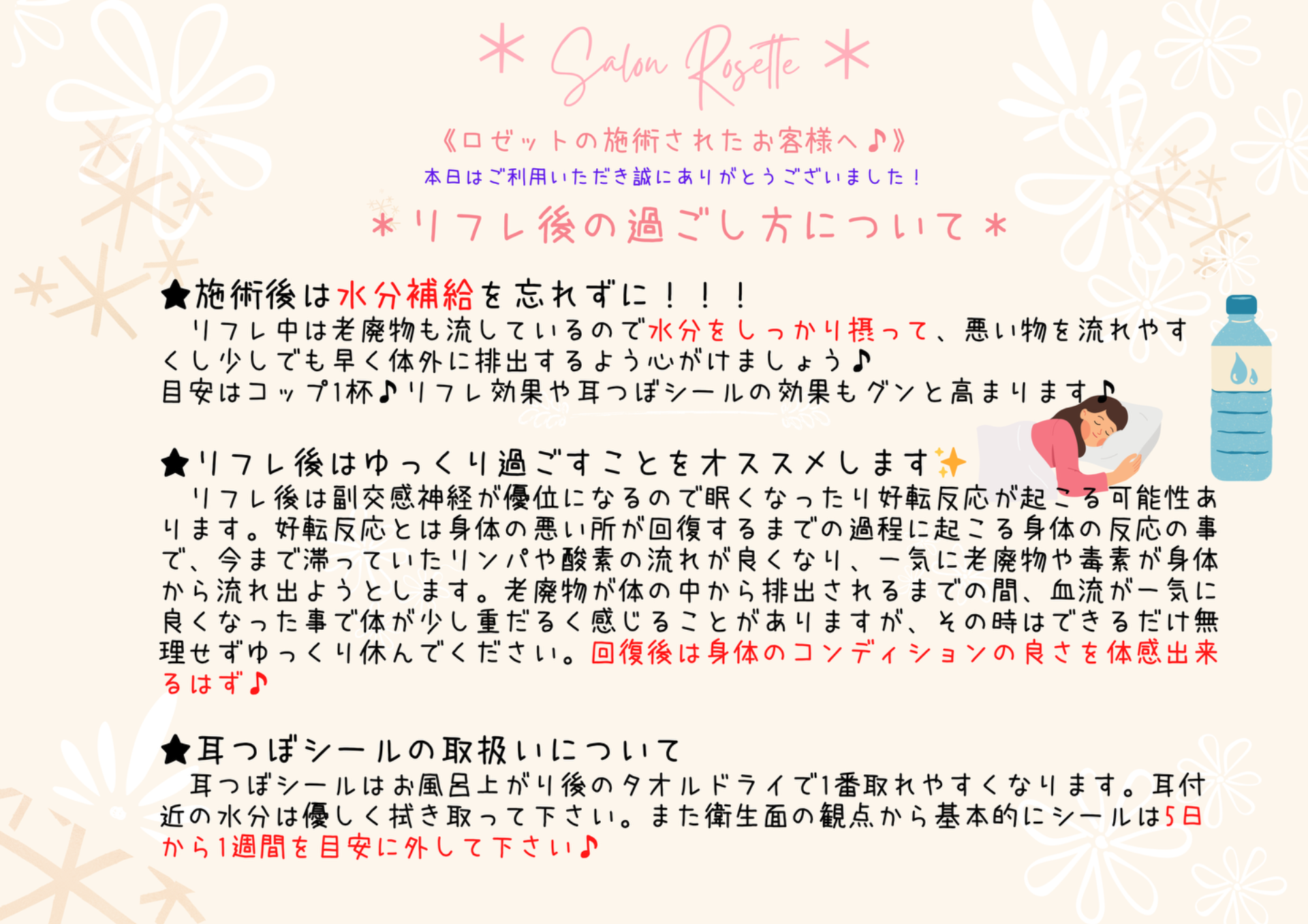 当サロンの全ての施術後は以下のようにお過ごし下さい♪